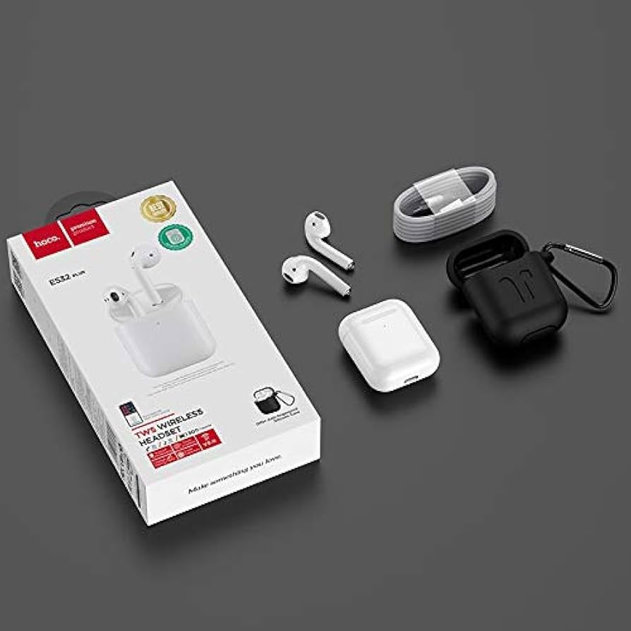سماعة أذن Hoco ES32 Plus مع حافظة شحن – صوت عالي الدقة وحافظة سيليكون مجانية باللون الأسود.