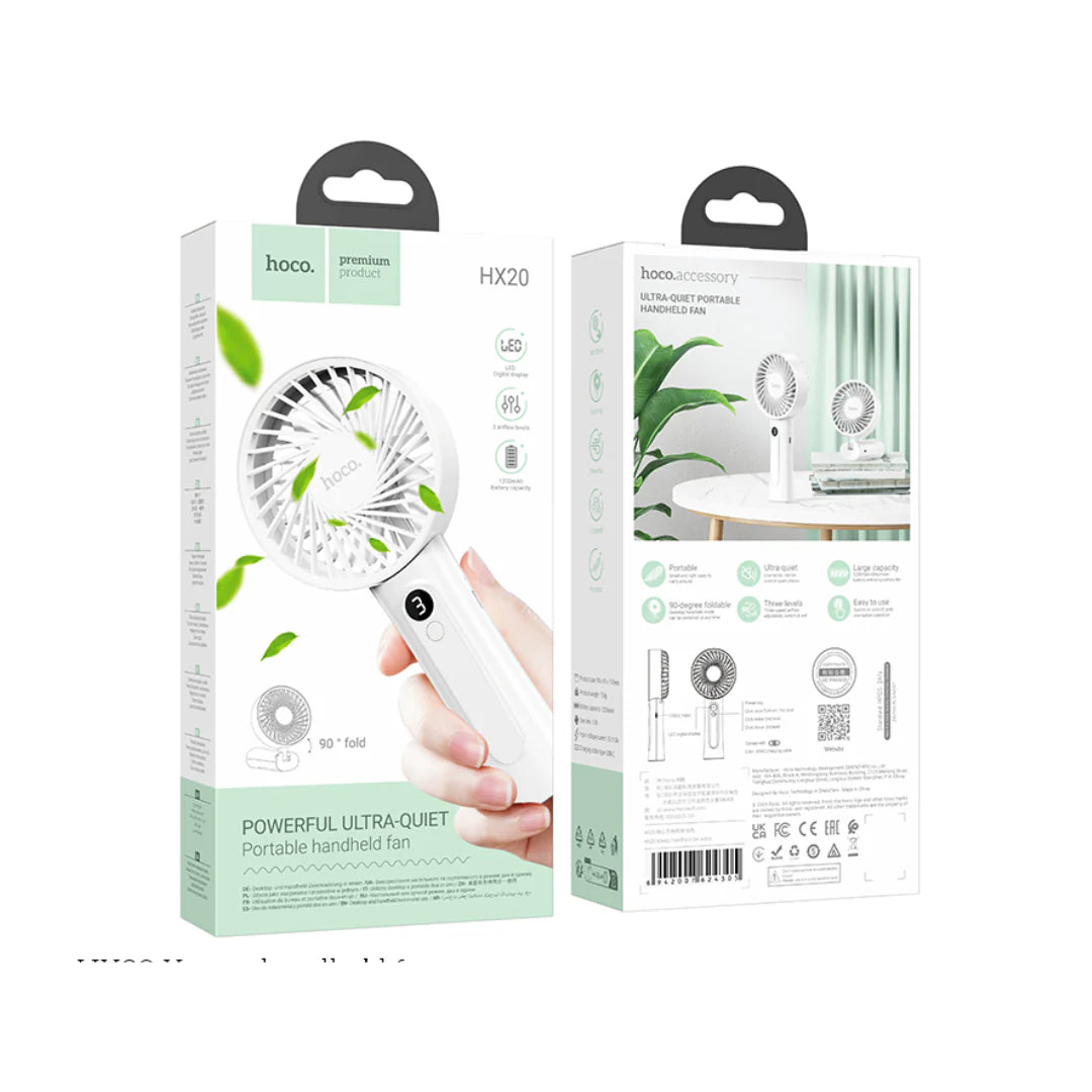 Hoco HX20 Mini Rechargeable Fan – 3-Speed Cool Wind | 1200mAh