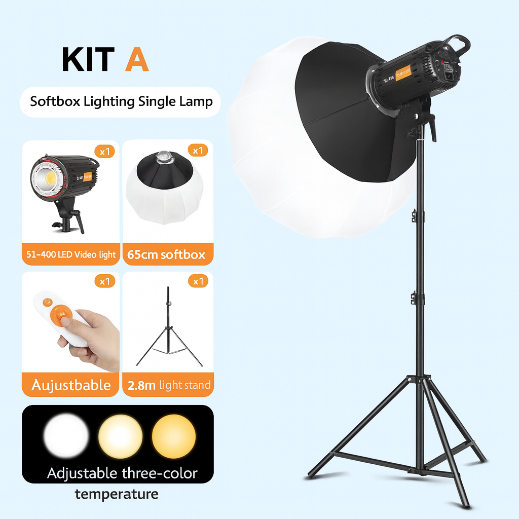 65cm Softbox Lighting Kit A – Single LED Video Light with Stand & Remote (3 Color Temps)