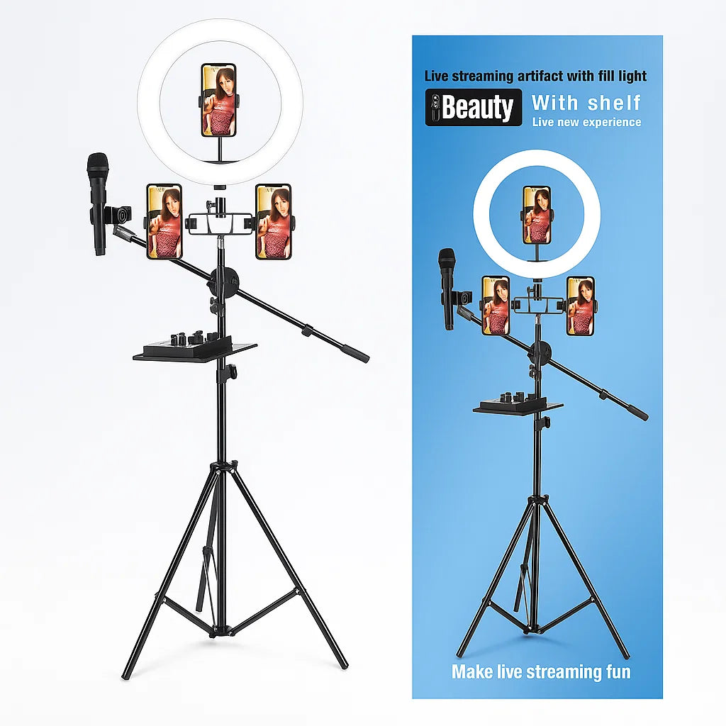 Ring Light With Stand – Live Streaming Kit with Fill Light & Shelf