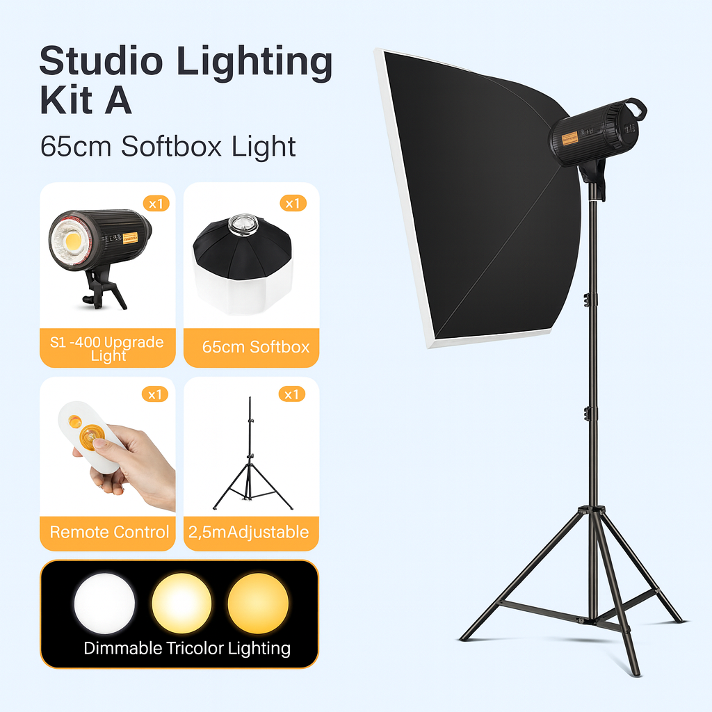 Studio Lighting Kit A – 65cm Softbox with S1-400 Upgrade Light & Remote