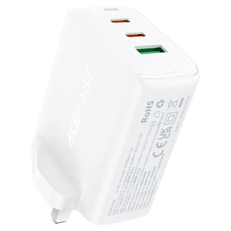 Acefast A44 GaN 65W Fast Charger – UK Plug with 3 Ports