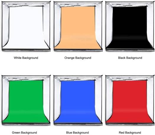 • Backdrops Included: White, Black, Orange