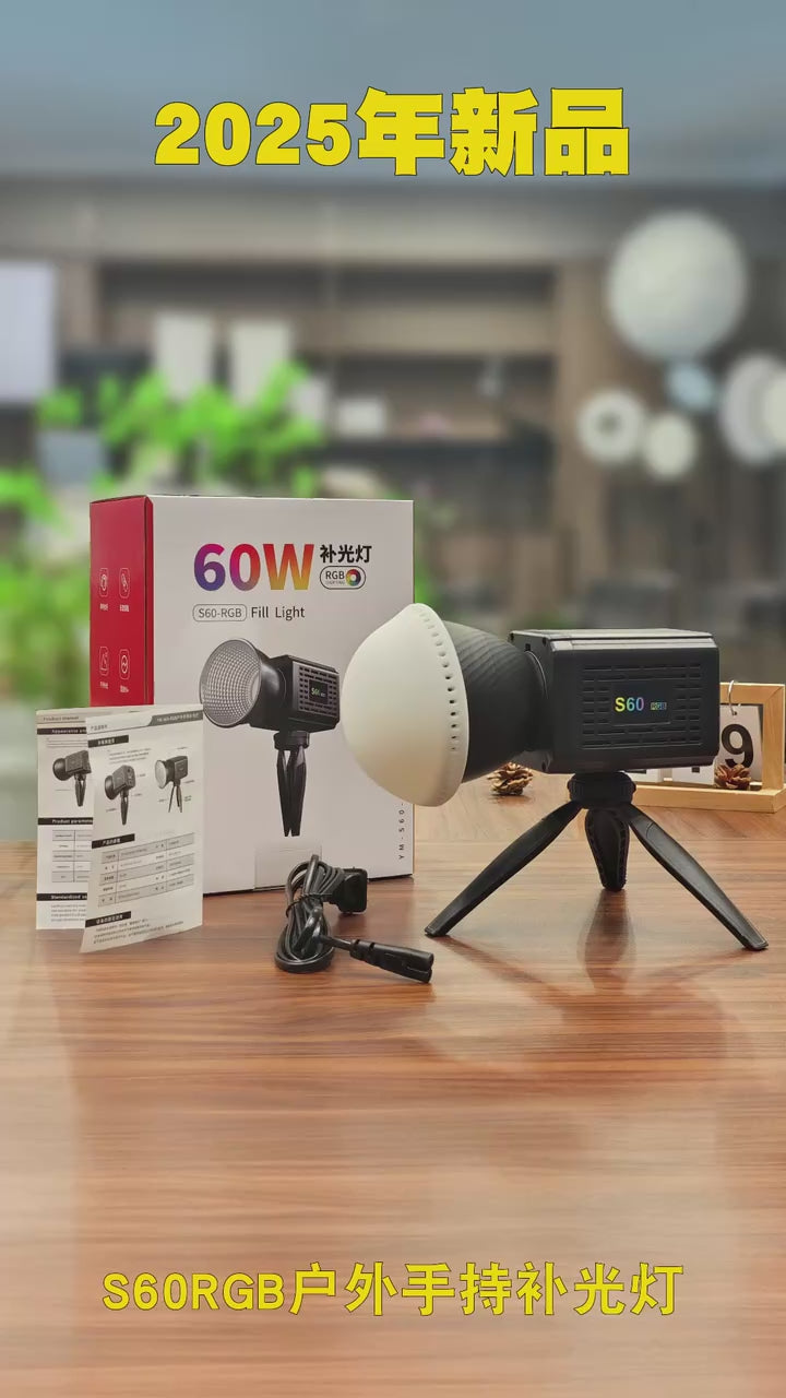 The YM-S60 RGB 60W rechargeable LED photography light is a powerful and portable lighting solution designed for photography, video recording, studio setups, and outdoor use. Its compact design and battery-powered operation make it ideal for creators who need flexibility on the go.